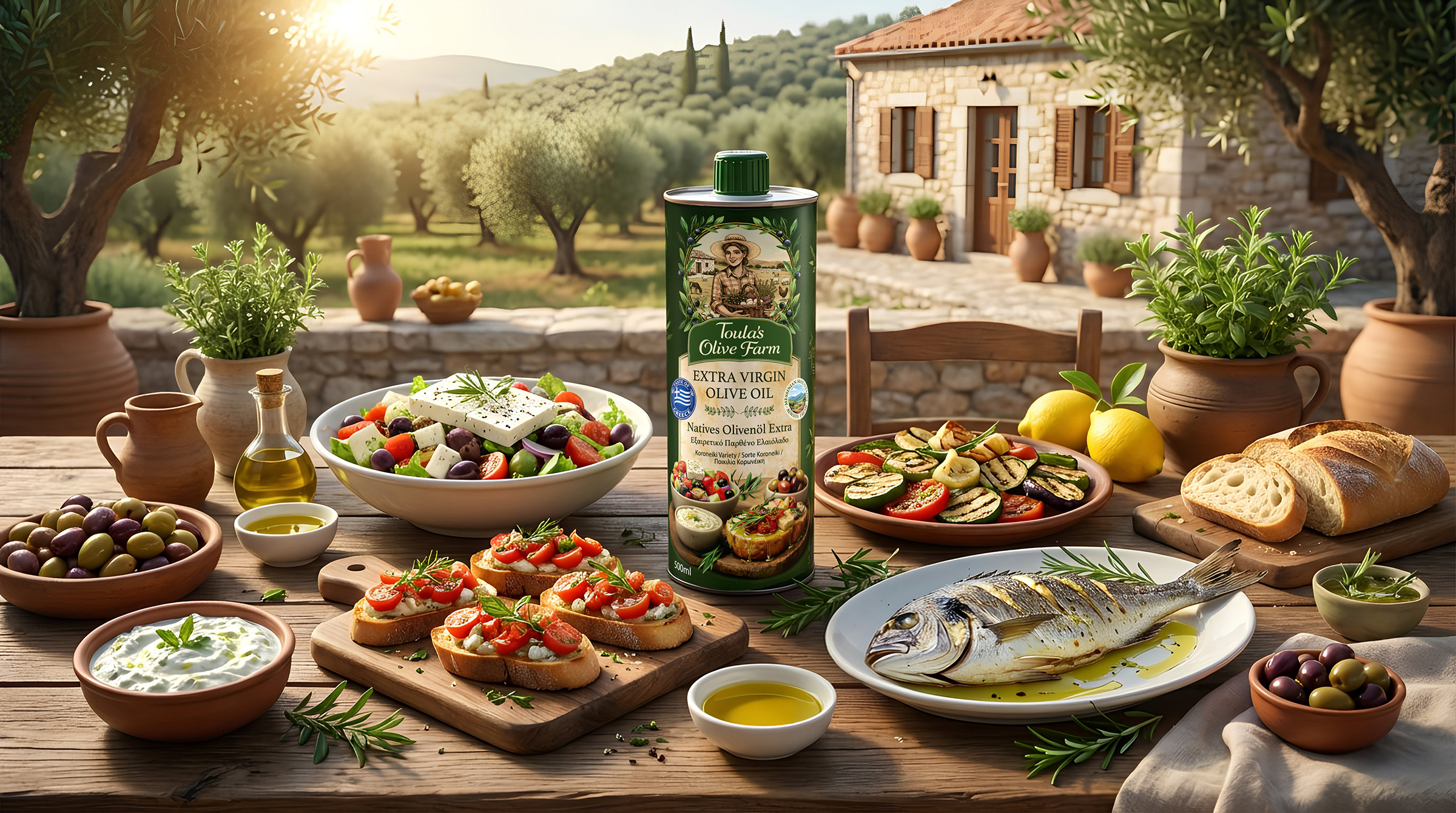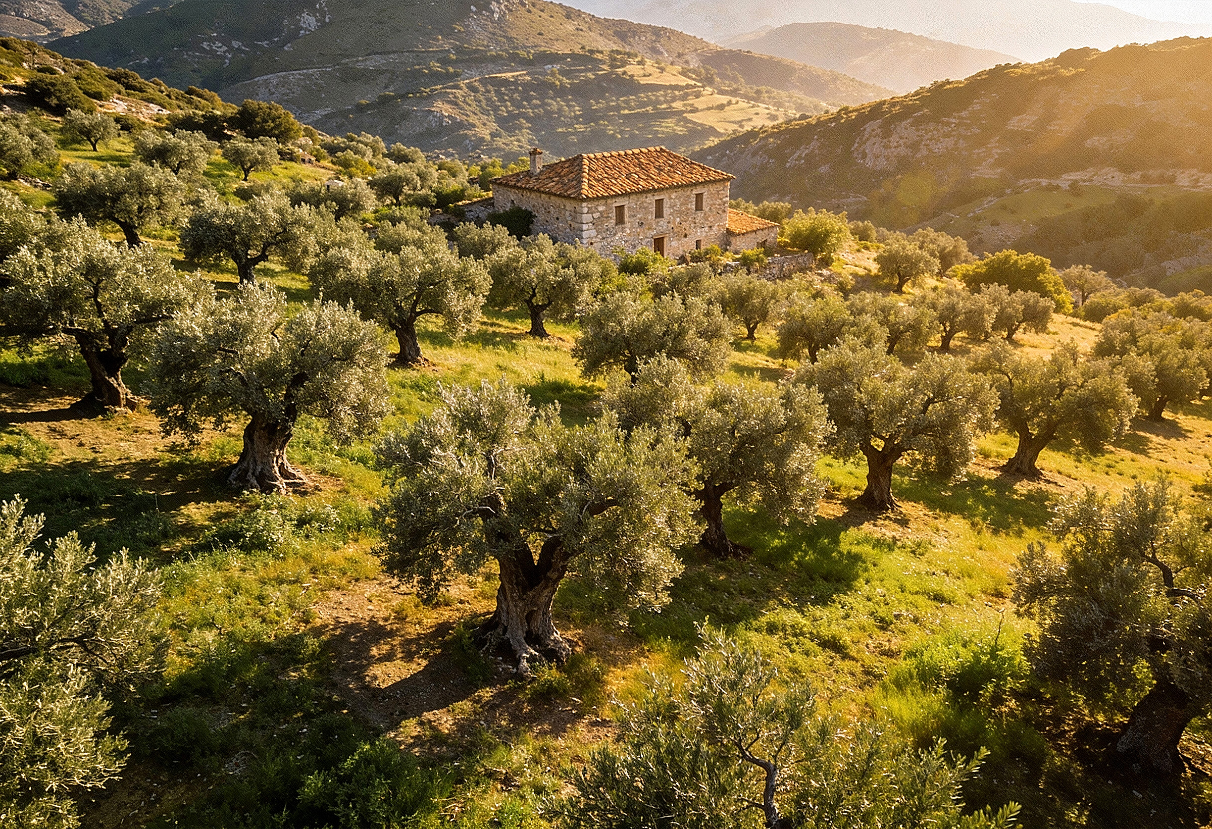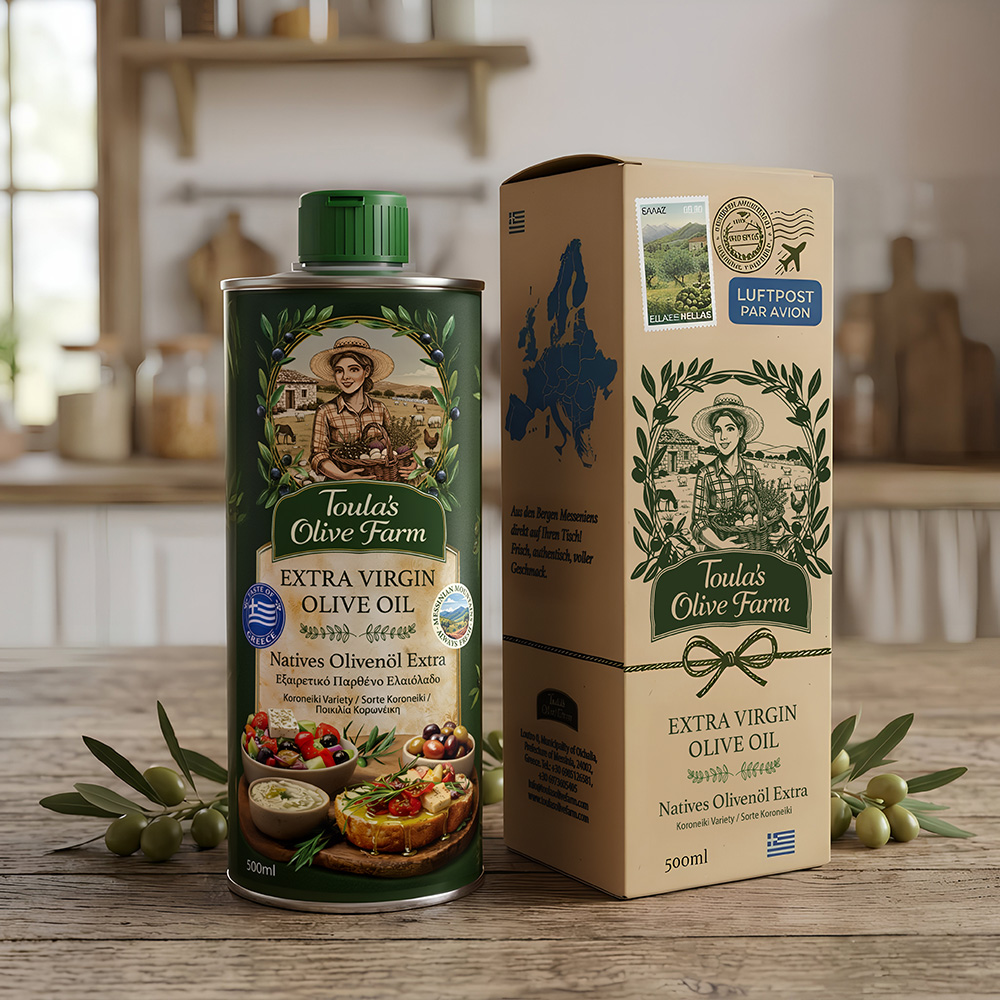 Toula’s Olive Farm is a small, family-run farm in the village of Loutro, northern Messinia, Greece. Surrounded by green hills, stone paths, and nearby rivers, our land has been cared for by our family for generations. Life here follows nature’s pace. We work by hand, without machines, allowing the land and the seasons to guide everything we grow and produce.